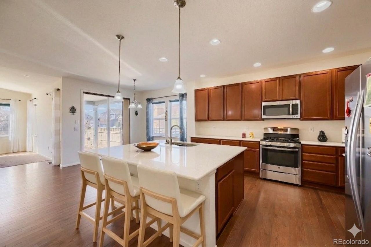Get ready to fall in love with your dream home! This gorgeous 4-bedroom, 3-bath home is move-in ready and comes with a 3-car garage! Picture this: living on a spacious corner lot that requires minimal outdoor maintenance. One owner. Pet-free and smoke-free home. As soon as you walk in, youll be welcomed by stunning hardwood floors in the foyer, kitchen, and dining room. The kitchen is a showstopper with its beautiful quartz countertops, an oversized island, tons of cabinets, and a fabulous pantry. Theres a rare main-floor bedroom with hardwood floors and a full bath just steps away! Upstairs, prepare to be amazed by the primary bedroom featuring more hardwood flooring, a walk-in closet, and a luxurious 5-piece bathroom with breathtaking mountain views. Youll also find a laundry room, a cozy loft, two additional bedrooms, and another full bath! Tech lovers will appreciate the pre-wiring for in-wall speakers, and the unfinished basement is your canvas to create an amazing space. And lets talk outdoor living! Host get-togethers on the stylish covered stamped cement patio, or unwind in the backyard, which backs onto a peaceful greenbelt! The front and back yards are equipped with 3-year-old artificial turf, so you can say goodbye to lawn care and hello to a forever green paradise! With a new roof (2.5 years old) and a freshly painted exterior (1 year old), this home feels as good as new. The community is fantastic, featuring a waterpark-style pool thats perfect for family fun. Located in a quiet, safe neighborhood, you have stunning Coal Creek Trail and open spaces right at your fingertips for hiking, jogging, biking, or just leisurely strolls. The Bob L. Burger Recreation Center, the Great Outdoors Waterpark, Lamont Does Park, and Old Town Lafayette are all just a short drive away. Only a few blocks from Peak to Peak Charter School! With easy access to Hwy 287 and I-25, everything you need is conveniently close. Dont let this incredible opportunity pass you by!